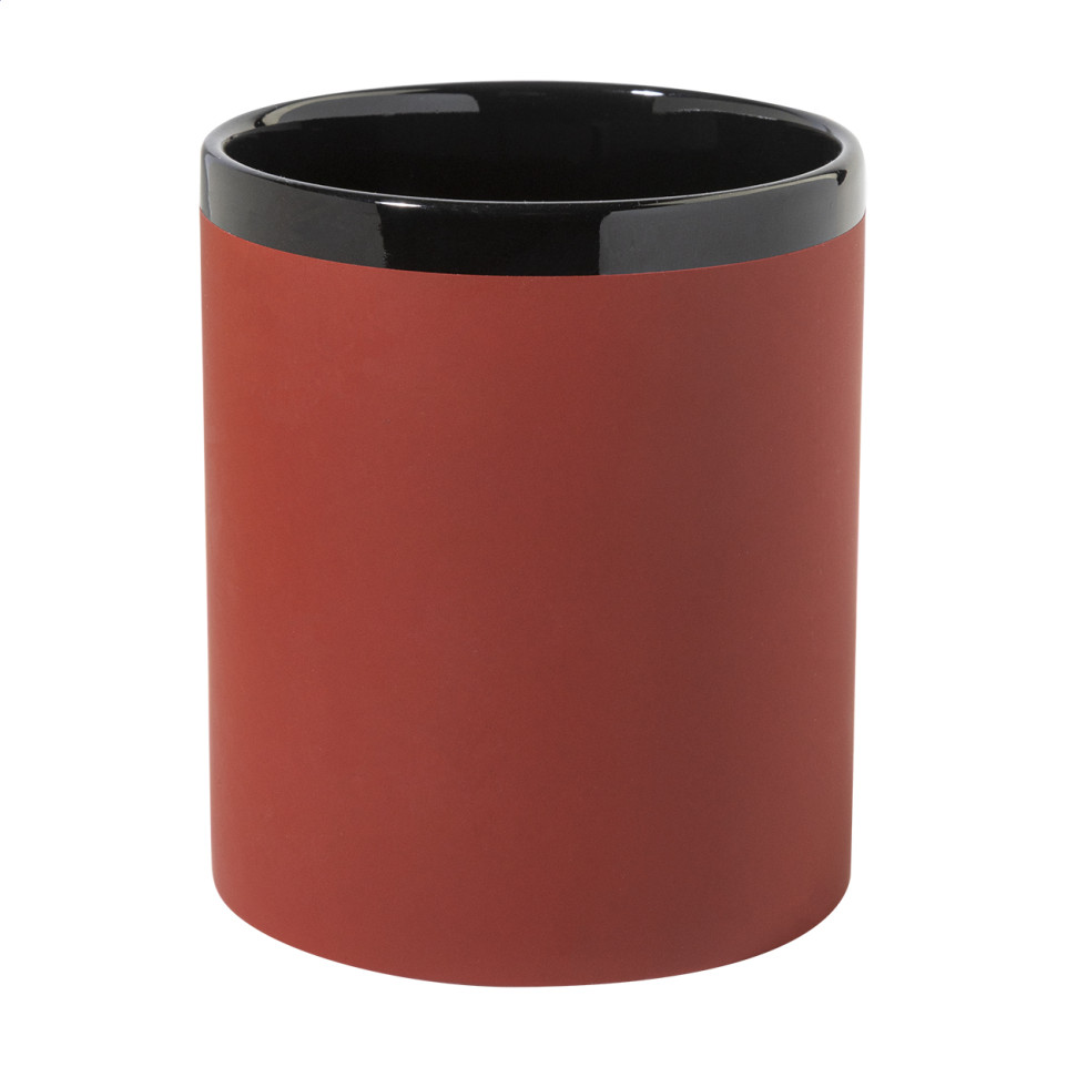 Bekijk producten in dezelfde categorieKeramische mok met een zachte soft-touch rubberen buitenafwerking in rood, een zwarte binnenkant en rand, en een inhoud van 300 ml. Ideaal voor dagelijks gebruik op kantoor of thuis.