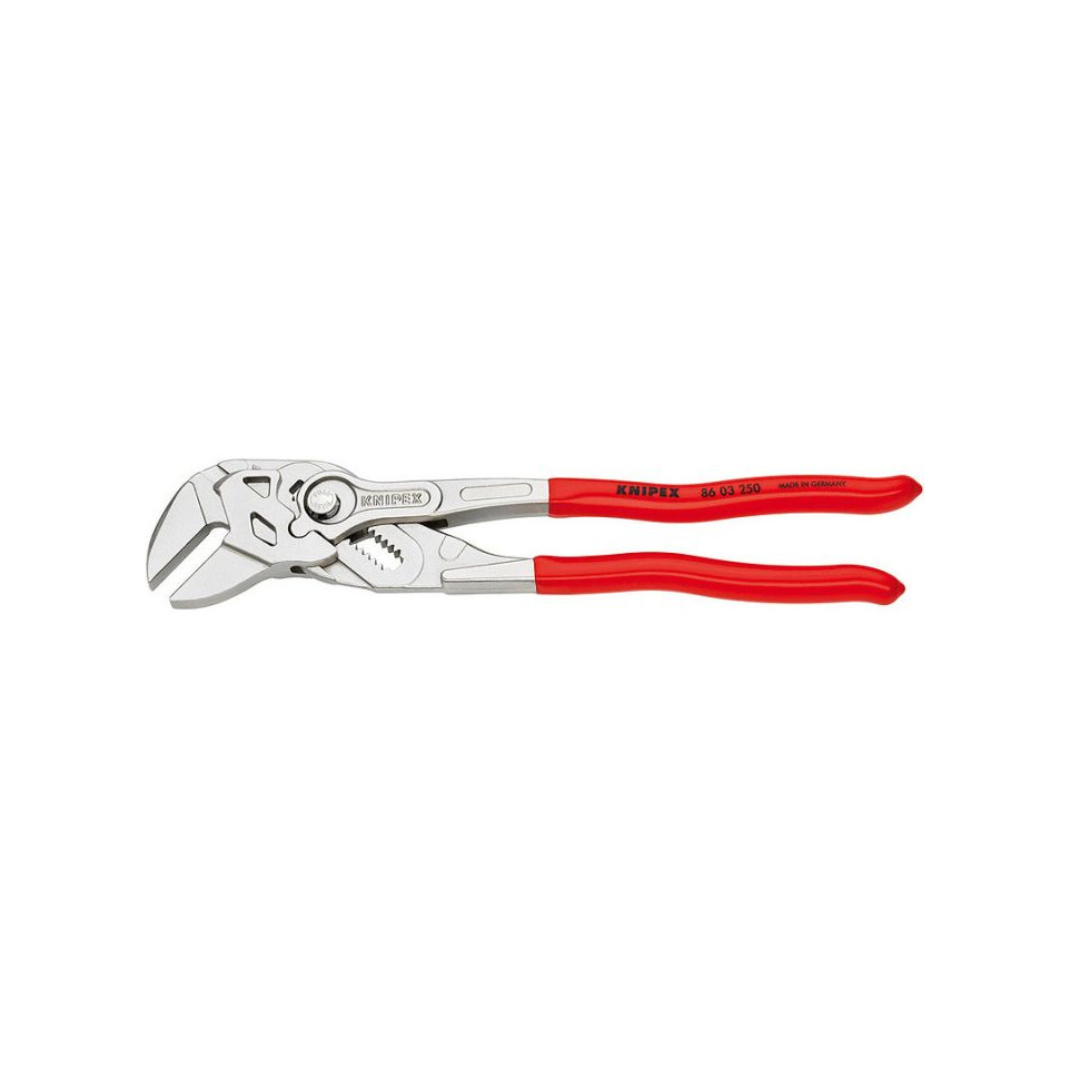 Knipex Sleuteltang 250mm is een multifunctionele tang die tang- en schroefsleutelfunctie combineert, ideaal voor grijpen, klemmen, buigen en het monteren van werkstukken. Geschikt voor diverse toepassingen in werkplaats, installatie, bouw en industrie.