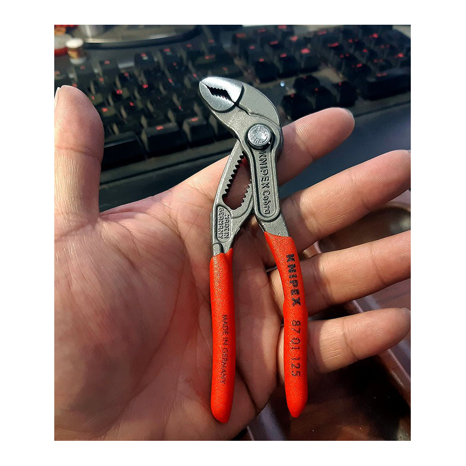 De Knipex cobra tang 125mm is een multifunctionele tang die geschikt is voor diverse taken in de bouw, metaalbewerking en andere industrieën. Het product biedt een krachtige en precisievolle greep, waardoor het ideaal is voor het hanteren van verschillende materialen en onderdelen.
