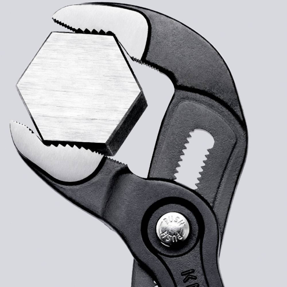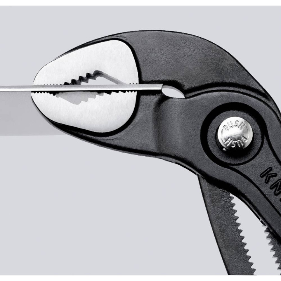 De Knipex 180mm cobra tang is een compacte, multifunctionele tang die uitzonderlijk geschikt is voor het grijpen, vasthouden en draaien van buizen, moeren en diverse componenten in krappe ruimtes.