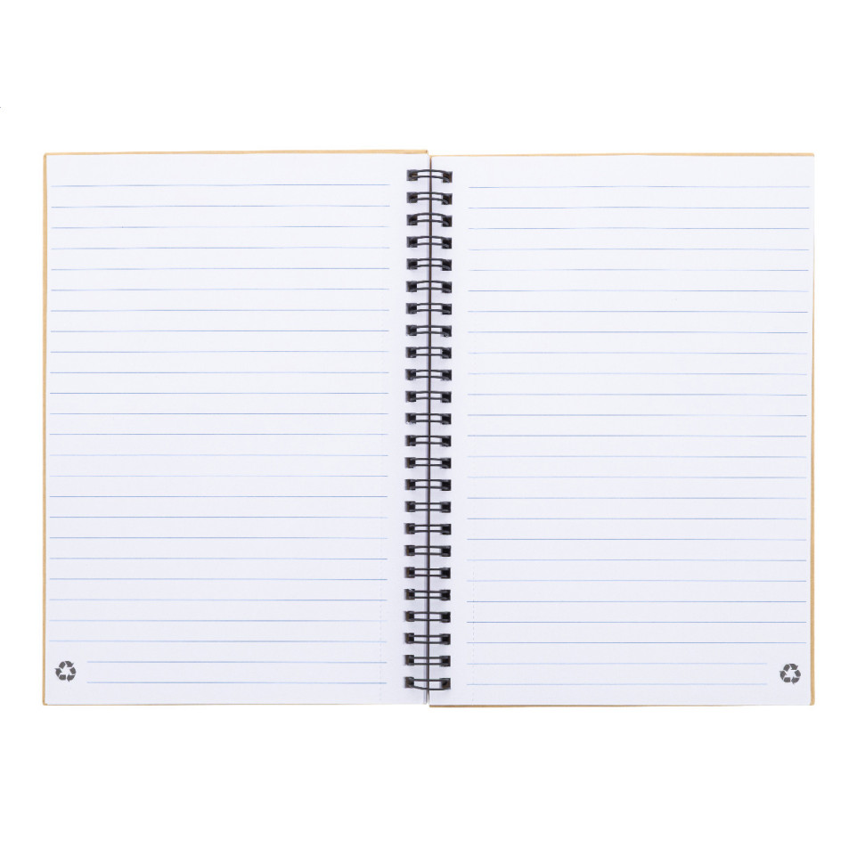 Strobus A5 natuurlijk notitieboek is een spiraalgebonden notitieboekje met omslag en 80 gelinieerde vellen, volledig gemaakt van gerecycled papier. Ideaal voor duurzaam noteren op kantoor, onderweg of bij vergaderingen.