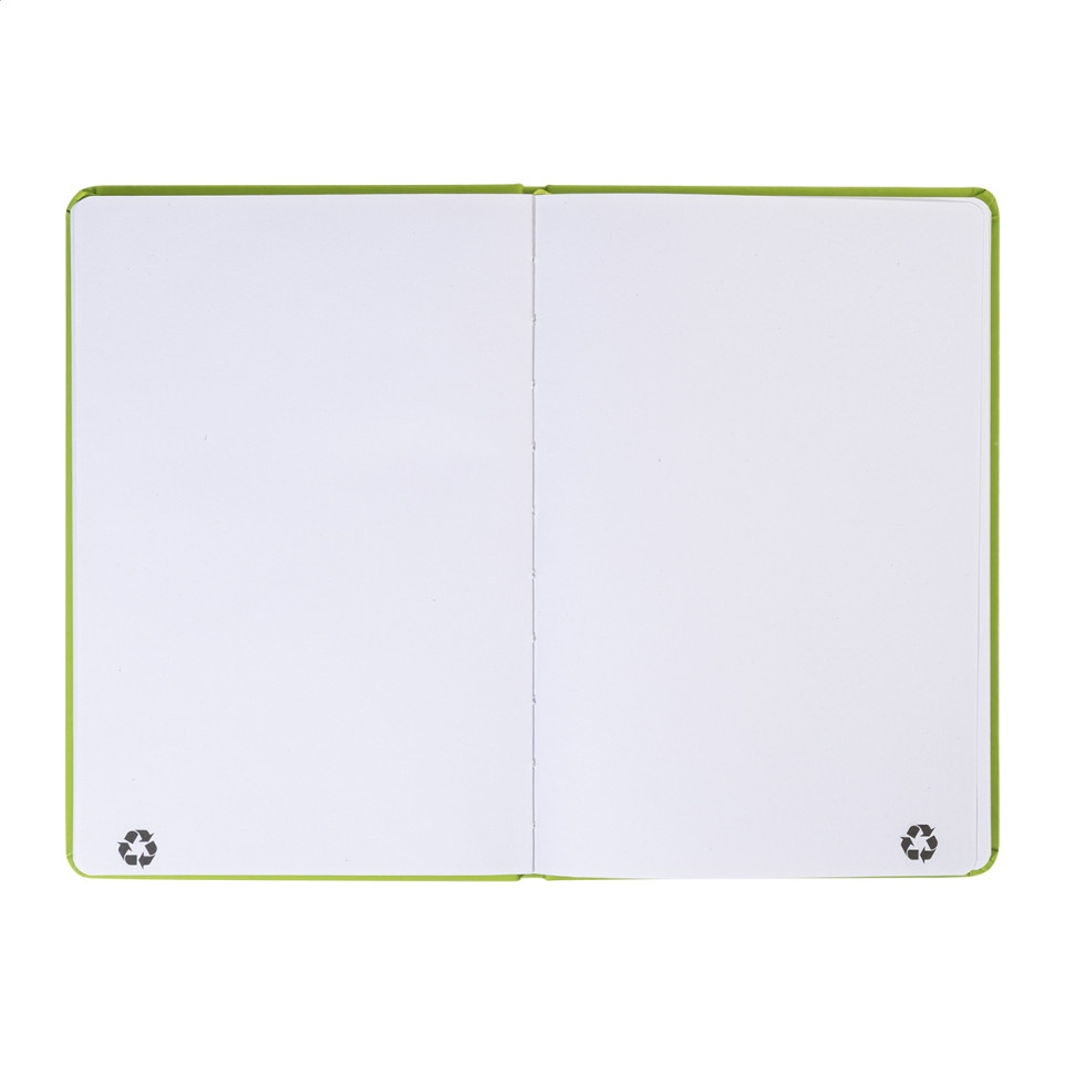 Het Repuk Blank A5 notitieboek in lime groen is vervaardigd uit gerecycled PU-leer en bevat 100 blanco vellen gerecycled papier, ideaal voor dagelijkse notities, schetsen of creatieve aantekeningen.
