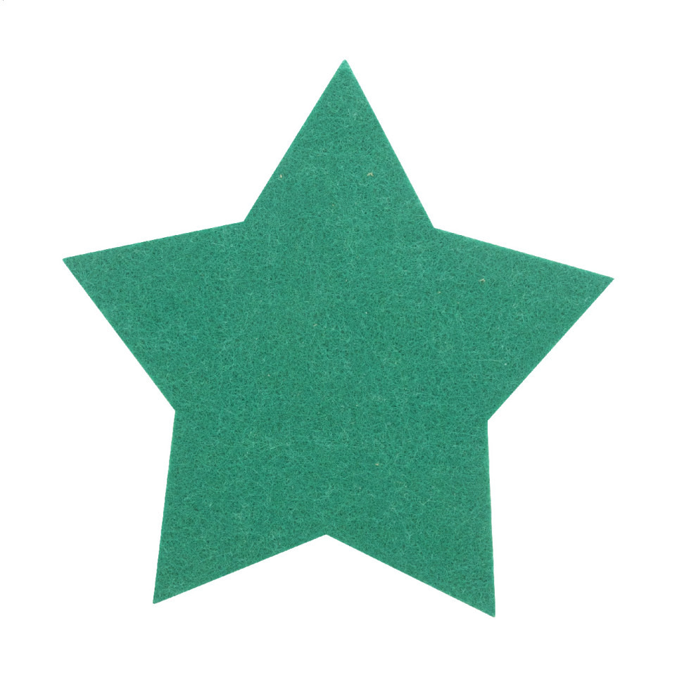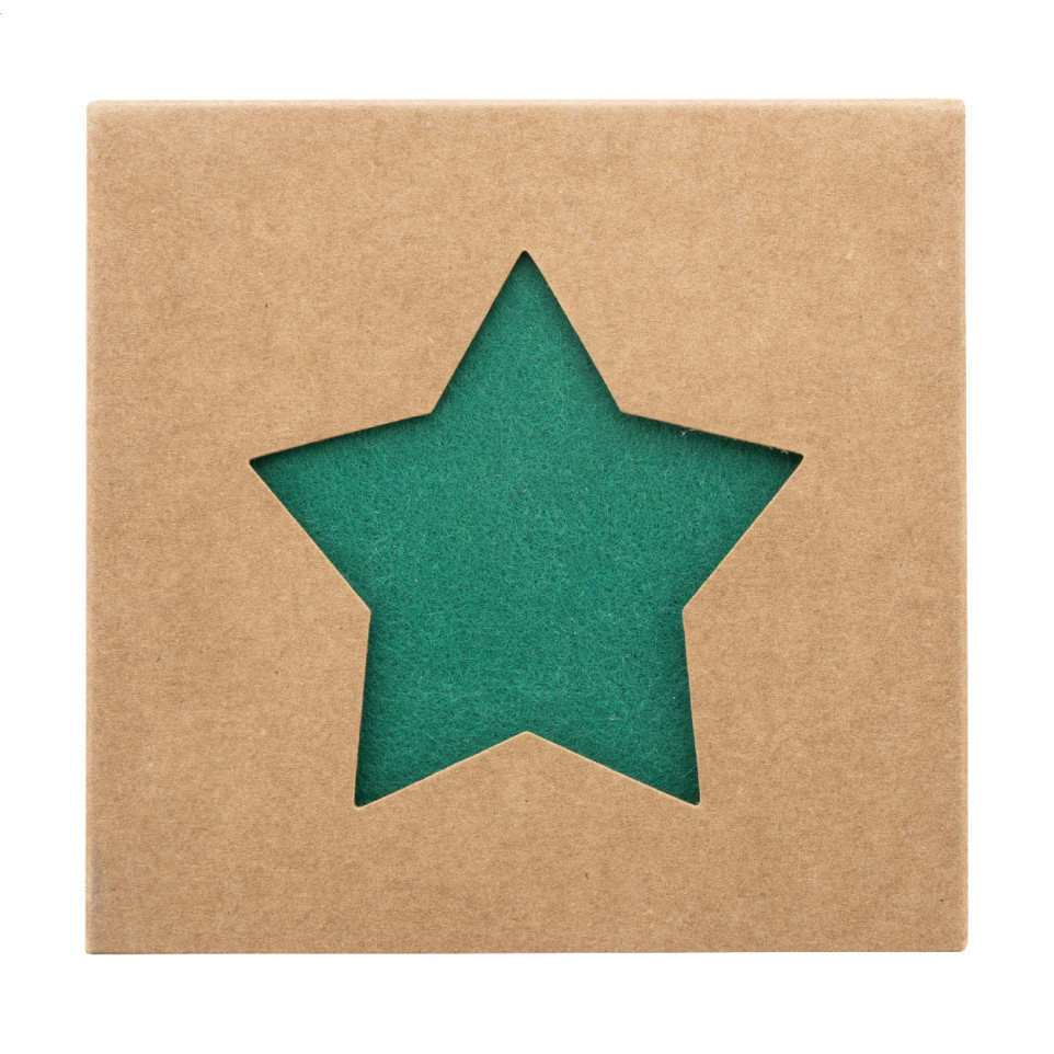 Set van 4 kerstachtbanen in stervorm, vervaardigd uit gerecycled RPET vilt. Geleverd in een duurzame kraftpapieren doos, ideaal voor feestelijke tafeldecoratie tijdens de feestdagen of als origineel relatiegeschenk.