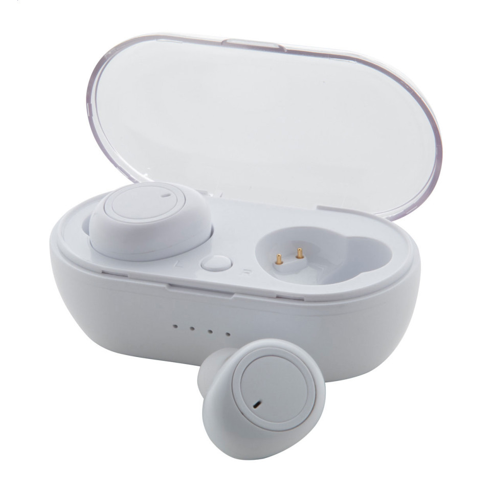 De Tinkle white bluetooth oordopjes bieden draadloos luistercomfort en een handsfree belervaring, verpakt in een compacte kunststof oplaadcase. Ideaal voor dagelijks gebruik onderweg, op kantoor of tijdens het sporten.