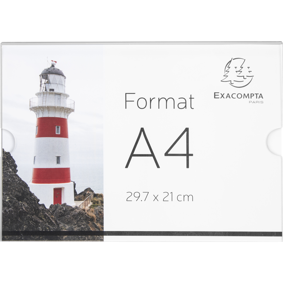 Wandpocket A4 horizontaal De Exacompta wandpocket is ideaal voor het inlijsten en tonen van foto's of documenten. In kwaliteitsvolle en uitermate transparante PMMA (acryl). Deze muurlijst kan worden vastgeschroefd via de voorziene gaten of worden vastgekleefd met de meegeleverde kleefstrips. Europese productie. 5 jaar garantie. UV-bestendig, verkleurt niet. Met KREAMAN op www.exacompta.com kunt u gemakkelijk uw eigen media volledig op maat maken.