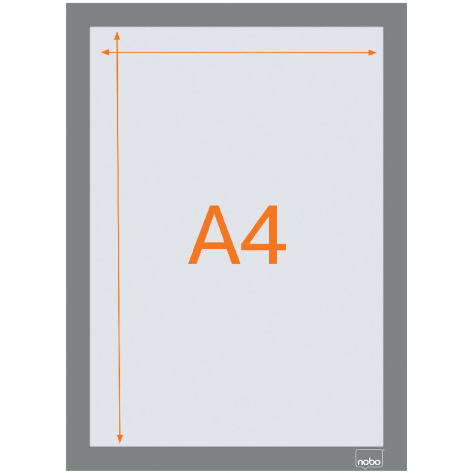 De Nobo zelfklevende magnetische kader A4 in zilver is een praktische set van twee kaders voor het snel en eenvoudig presenteren van posters, mededelingen of andere documenten op vlakke oppervlakken, zowel staand als liggend.