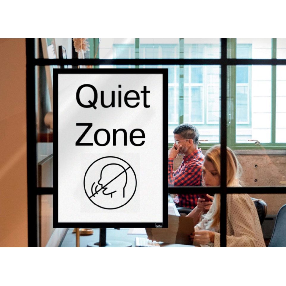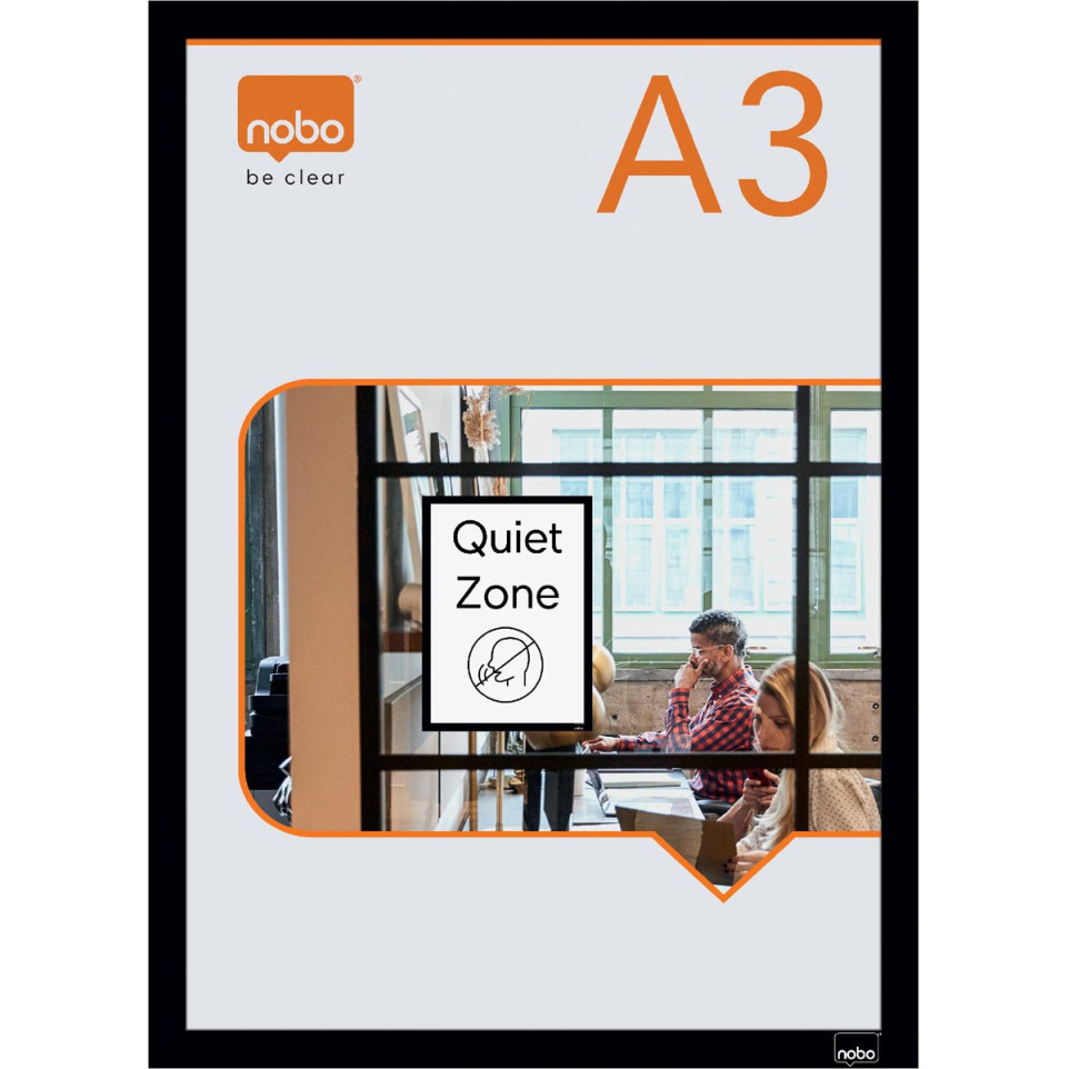 Zelfklevende magnetische kaders van Nobo in het formaat A3, uitgevoerd in zwart. Ontworpen voor het eenvoudig tonen van posters en informatie op vlakke oppervlakken in kantoren, scholen of openbare ruimtes. Wordt geleverd als set van 2 stuks.