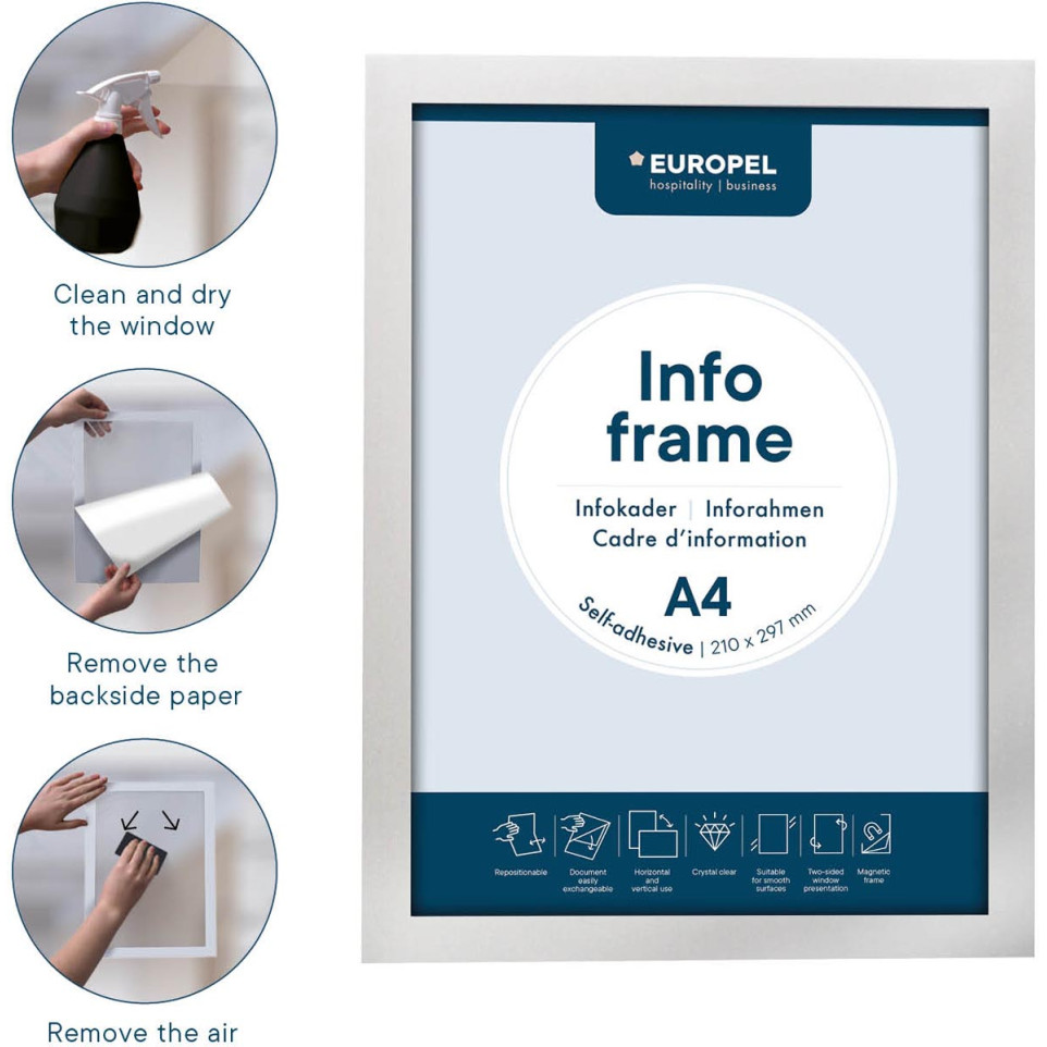 - De Europel zelfklevend kader A4 is eenvoudig te installeren en te gebruiken, zelfs voor niet-technische personen.