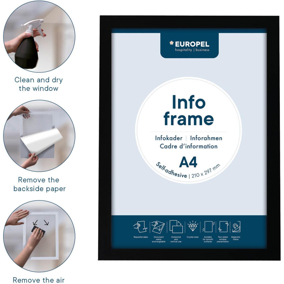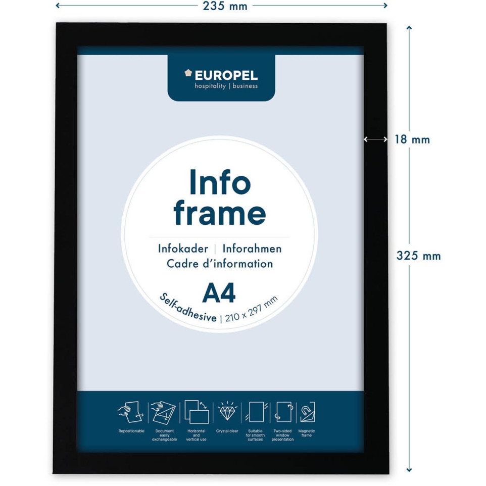 Europel zelfklevend kader A4, zwart, pak van 2 stuks, is een handig product voor het ophangen van tassen in kantoorruimtes of thuis. Het is geschikt voor verschillende soorten tassen en biedt een stabiele en duurzame oplossing.