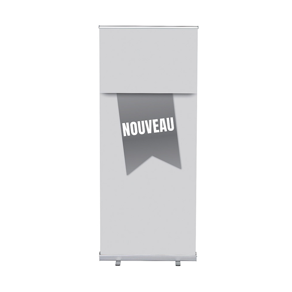 De Roll-Banner Budget 85 Complete Set Nieuw Grijs Frans is ideaal voor promotionele evenementen, beurzen en gebruik in overdekte openbare ruimtes. Het is een uitstekende displayoplossing voor producten of bedrijfsinformatie.