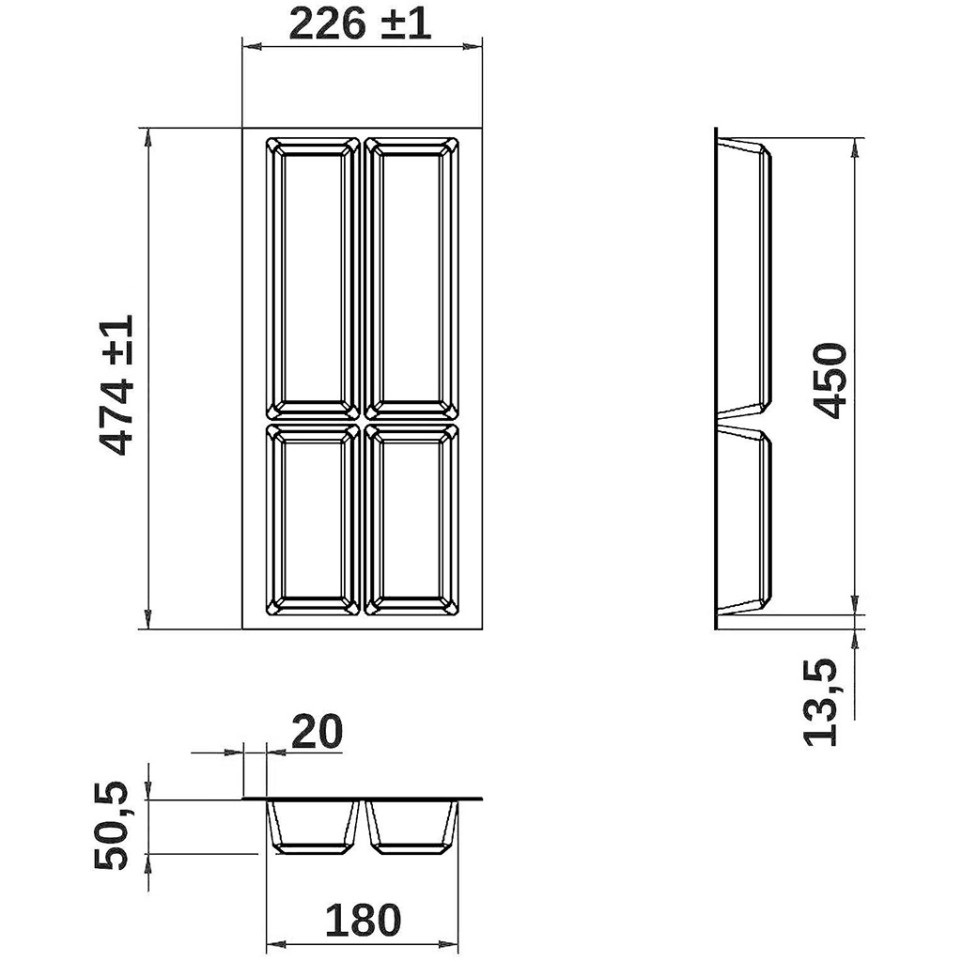 W x D x H (mm) 226 x 474 x 50,5