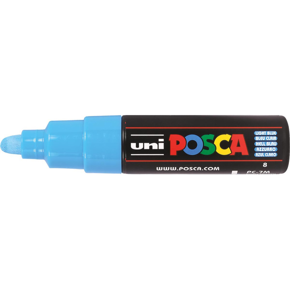 De Uni POSCA paintmarker PC-7M in hemelsblauw is een veelzijdige marker met een schrijfbreedte van 4,5 tot 5,5 mm. Geschikt voor tekenen, schilderen, schrijven en markeren op vrijwel elk oppervlak, zowel binnen als buiten.