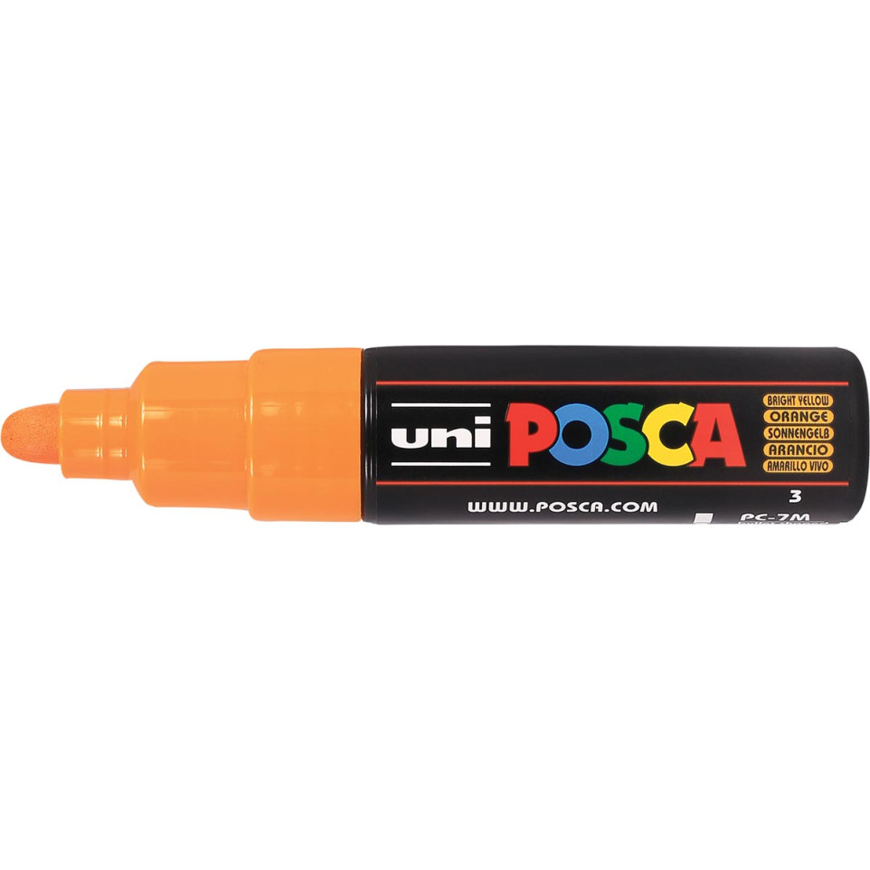De Uni POSCA paintmarker PC-7M is een veelzijdige oranje verfmarker met een schrijfbreedte van 4,5-5,5 mm, ideaal voor schilderen, tekenen, schrijven en markeren op uiteenlopende oppervlakken zoals papier, karton, steen, textiel, keramiek, glas, metaal, kunststof en hout. Geschikt voor grote vlakken en precieze lijnen.
