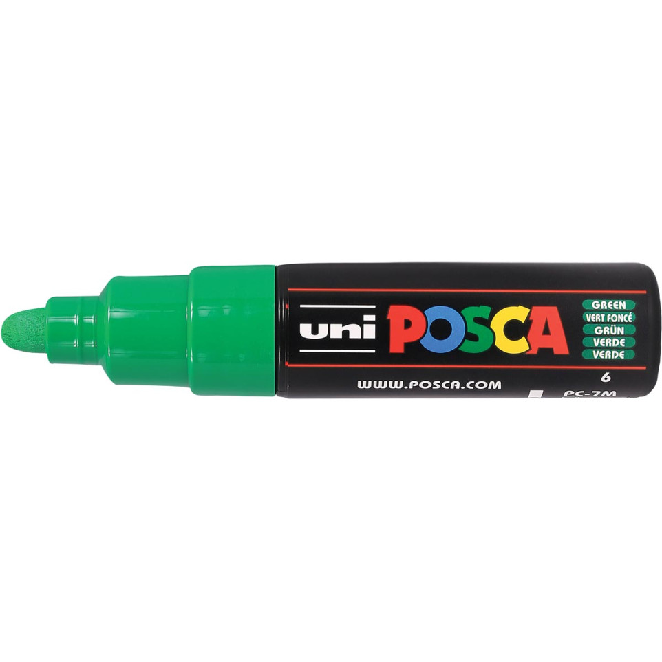 De Uni POSCA paintmarker PC-7M in donkergroen is een veelzijdige merkstift met een brede conische punt van 4,5 – 5,5 mm. Ideaal voor schilderen, tekenen, schrijven en markeren op vrijwel elk oppervlak, zowel binnen als buiten.