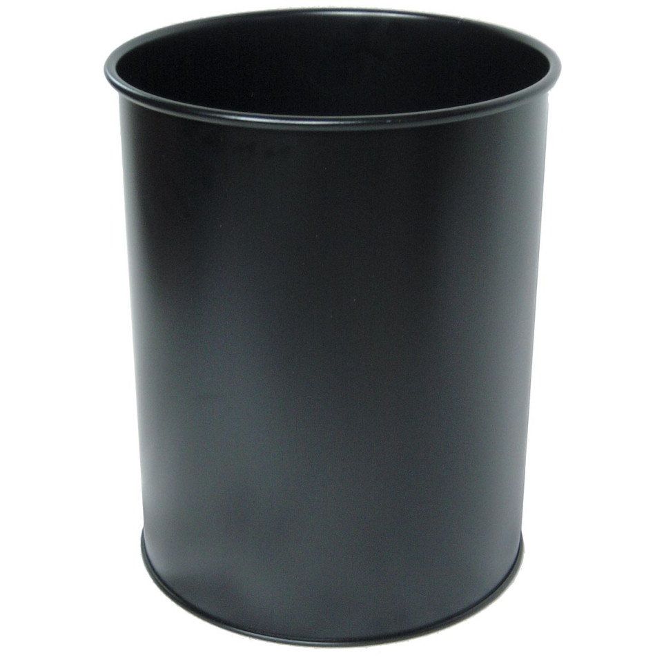 Ronde metalen papiermand van Durable in zwart, met een inhoud van 15 liter. Ideaal voor gebruik op kantoor, in studie- of werkruimtes dankzij het compacte formaat.