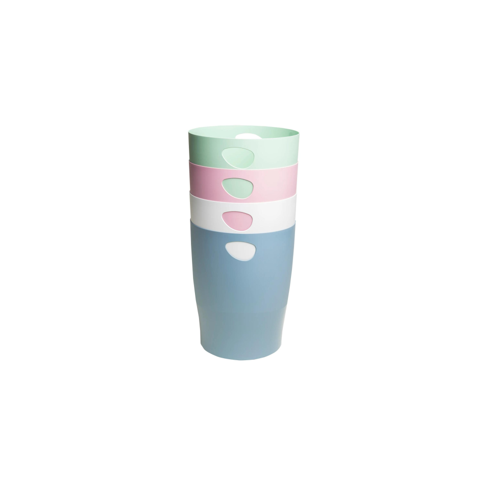 Prullenbak Ecobin AutentiK De top in design in combinatie met de hoogste ecologische vereisten, uit wit kunststof gemaakt van afval. AutentiK staat voor producten die nieuw leven geven aan gebruikt plastic. Een innovatie van Exacompta. Deze collectie, met Scandinavische invloeden in de kleuren wit, snoeproze, saliegroen en blauwgrijs, past moeiteloos in alle interieurs en kantoorruimtes. Deze prullenmand met een inhoud van 15 liter is zeer handig. Met ge ntegreerde handgrepen om de bak gemakkelijk te verplaatsen en te ledigen. De binnenzijde is eenvoudig schoon te maken. Met een uitstekende prijs-kwaliteitverhouding, maakt deze papiermand het eenvoudig om documenten te sorteren en weg te gooien tegen minimale kost. Dit product, met zijn strakke en tijdloze design, is ideaal voor gebruik op kantoor of thuis. 5 jaar garantie.
