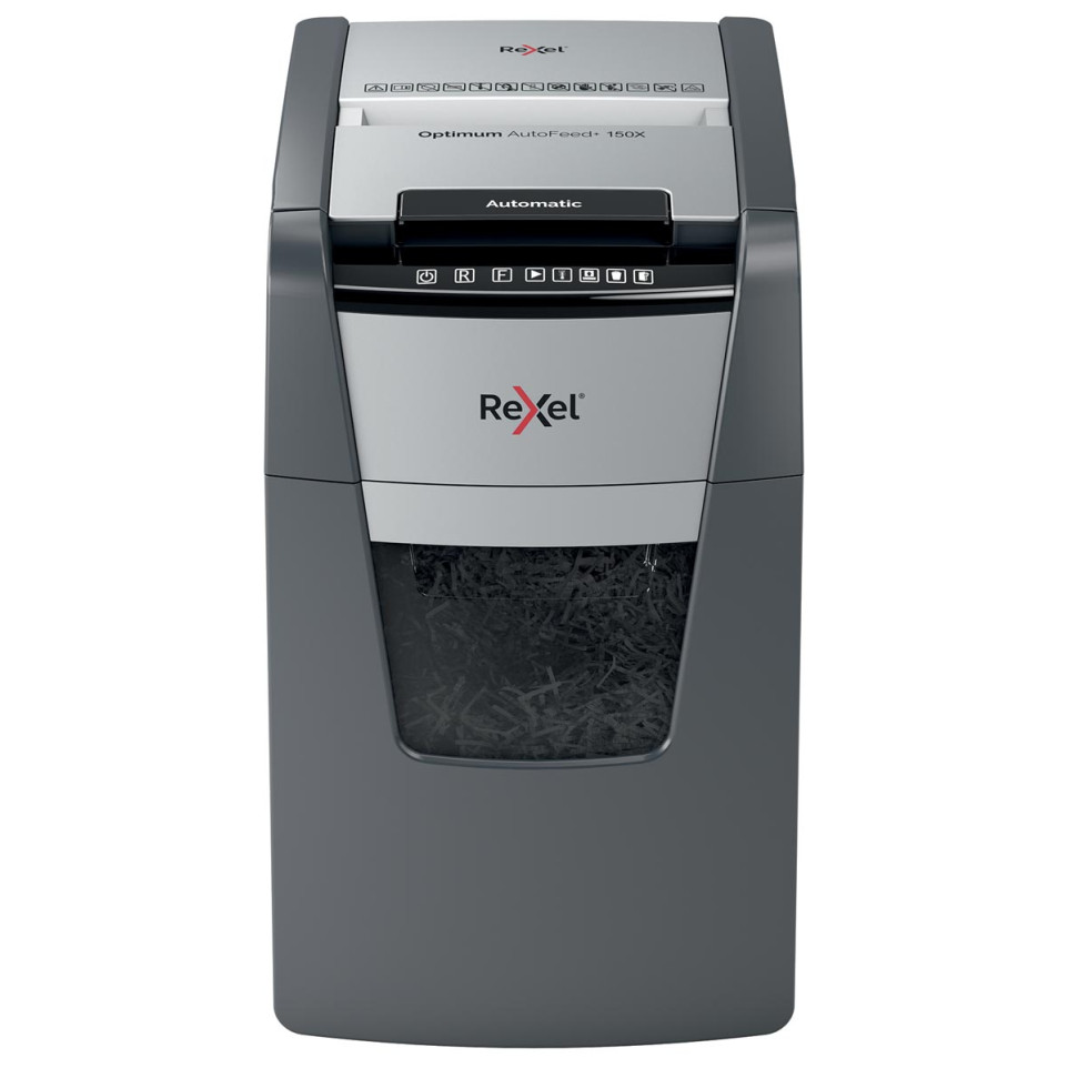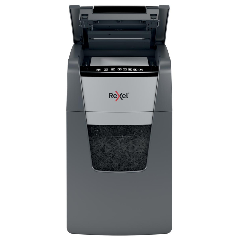 Moet ik nietjes en paperclips verwijderen voor hetvernietigen? - Nee, de Rexel Optimum Auto+ 150X vernietigt nietjes en paperclips automatisch mee met het papier.