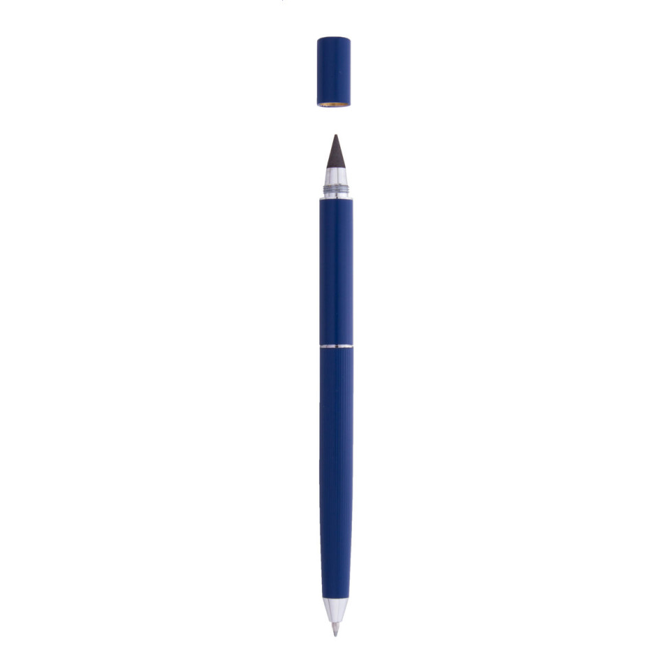 De Elevoid donkerblauwe inkloze balpen is een elegante 2-in-1 oplossing die zowel als traditionele balpen en als innovatieve inkloze pen fungeert. Perfect voor professionals die waarde hechten aan duurzaamheid en stijl in hun schrijfaccessoires.