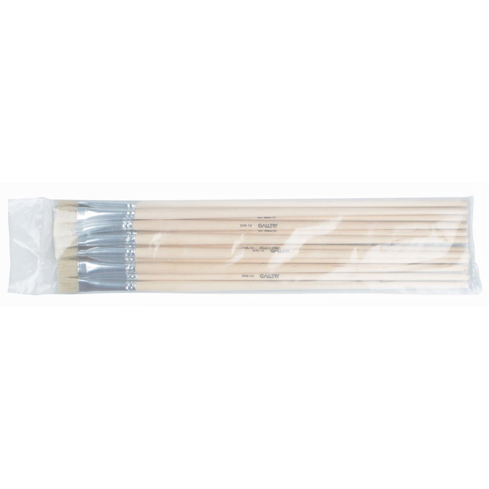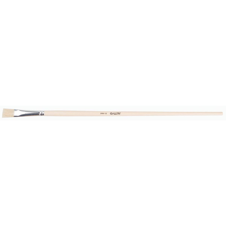 Gallery olieverfpenseel nr 12 is een plat penseel met lange steel, vervaardigd uit varkenshaar. Ideaal voor olieverf, geeft het penseel goede controle en dekking bij het opzetten van grote vlakken of het maken van strakke lijnen.