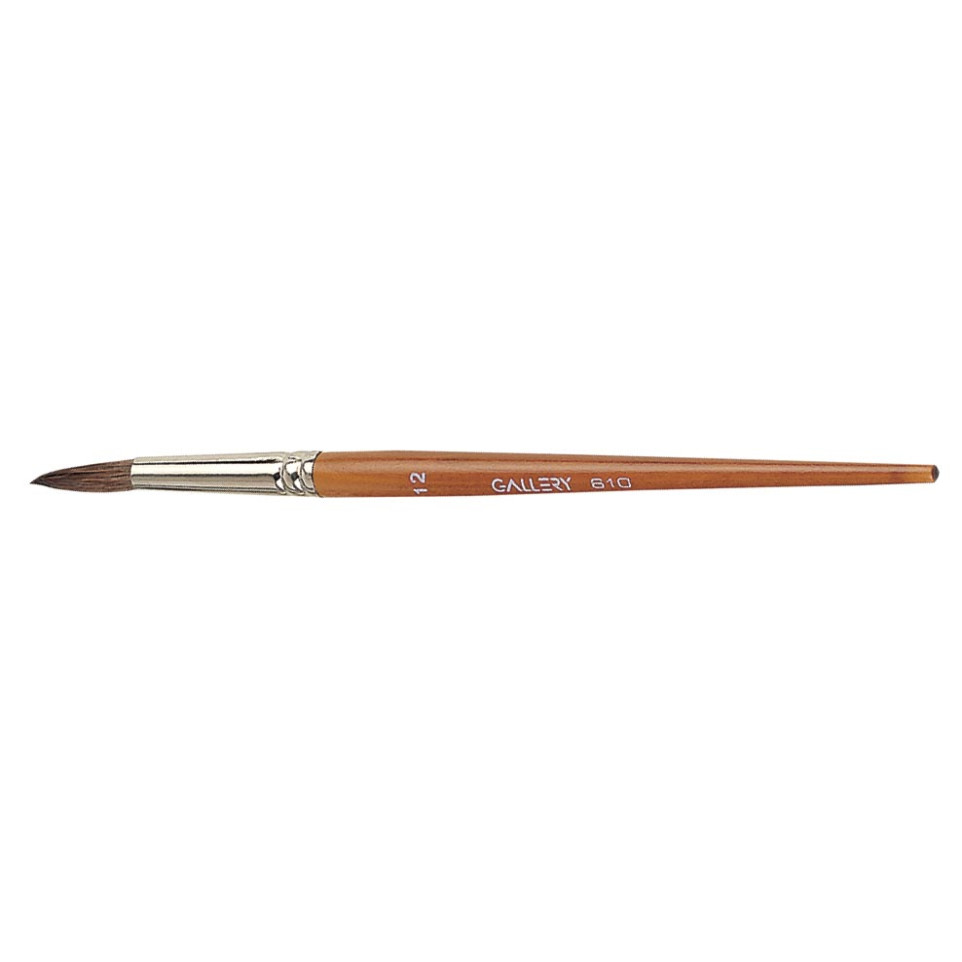 De Gallery penseel reeks 610 nr 12 is een rond penseel gemaakt van zuiver ponyhaar, speciaal ontwikkeld voor gebruik met water- en plakkaatverf. Geschikt voor fijn schilderwerk en precieze details.