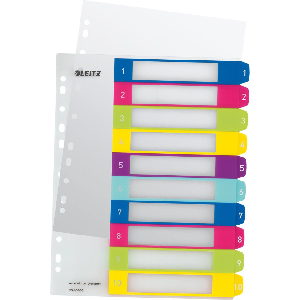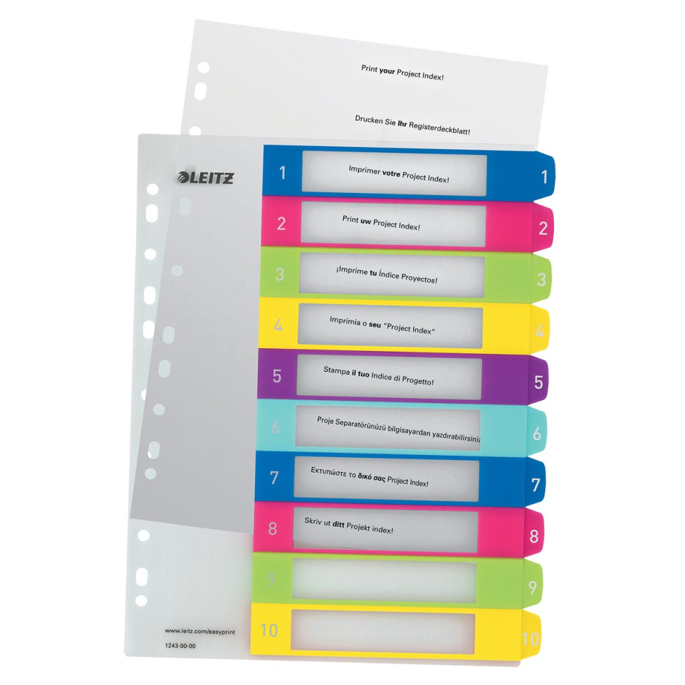 Print gemakkelijk zelf aangepaste tabtitels via Leitz EasyPrint en orden uw documenten overzichtelijk in elke map met 11-gaats perforatie. De duurzame PP-constructie zorgt ervoor dat de tabbladen bestand zijn tegen intensief gebruik, zelfs bij regelmatig bladeren of hervullen van de map.