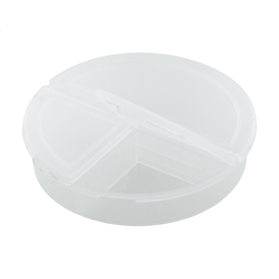 De doos beschikt over drie aparte vakken om medicatie of supplementen gescheiden te bewaren.