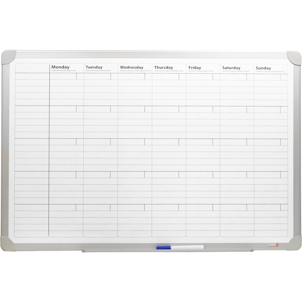 Schrijf met een whiteboardmarker activiteiten, afspraken en deadlines direct op het bord en wis eenvoudig met een droge doek. Magneten maken het mogelijk om notities of documenten te bevestigen. Monteer het planbord eenvoudig aan de muur; het accessoiregoot biedt ruimte voor markers en wisser.