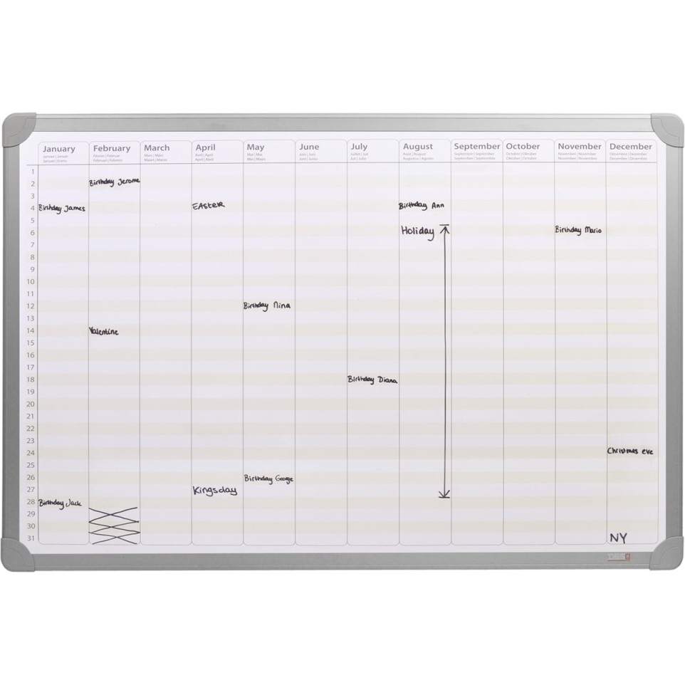 De Desq magnetische jaarplanner is een overzichtelijk planbord van 60 x 90 cm met aluminium omlijsting. Geschikt voor dagelijks, team- of projectmatig jaaroverzicht; zowel thuis als op kantoor. Magnetisch, beschrijfbaar en droog uitwisbaar.