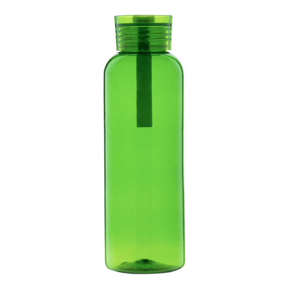 De Resip green RPET bottle is een milieuvriendelijke drinkfles met een inhoud van 500 ml, voorzien van een bijpassend deksel en een handige siliconen draagband. Perfect voor dagelijks gebruik onderweg, tijdens het sporten of op kantoor.