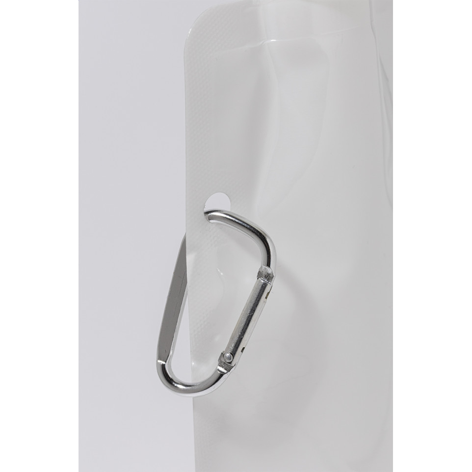 De Carabol opvouwbare RPET sportfles van 500 ml is een compacte, milieuvriendelijke drinkfles met sportdop en aluminium karabijnhaak, ideaal voor actieve gebruikers onderweg.