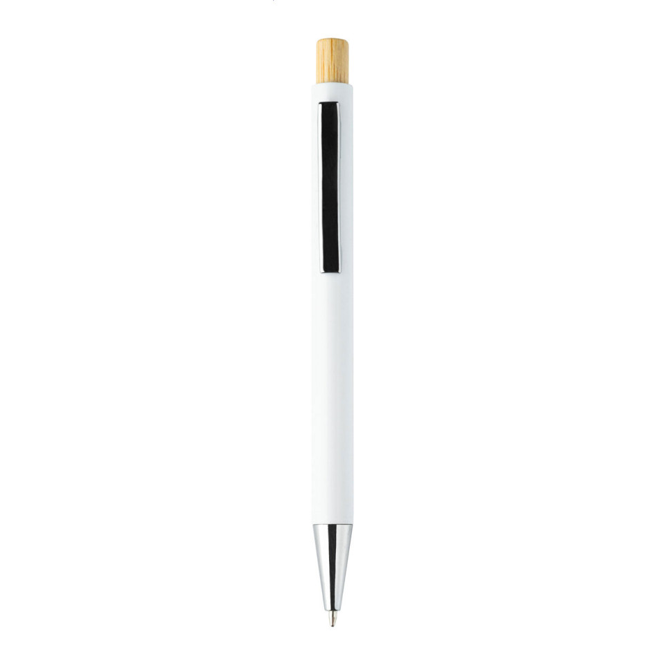 - Duurzaam alternatief binnen het assortiment kunststof pennen; combineert gerecyclede materialen met natuurlijke accenten.
