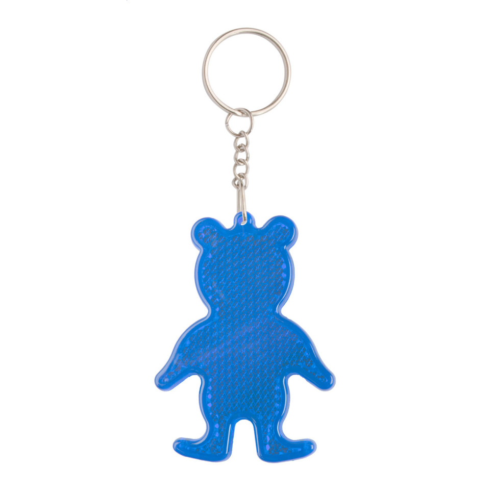 Safebear blauwe prismasleutelhanger in de vorm van een beer, gemaakt voor promotioneel gebruik. Ideaal voor het vergroten van zichtbaarheid aan tassen, sleutels of jassen, geschikt voor jong en oud tijdens evenementen of onderweg.