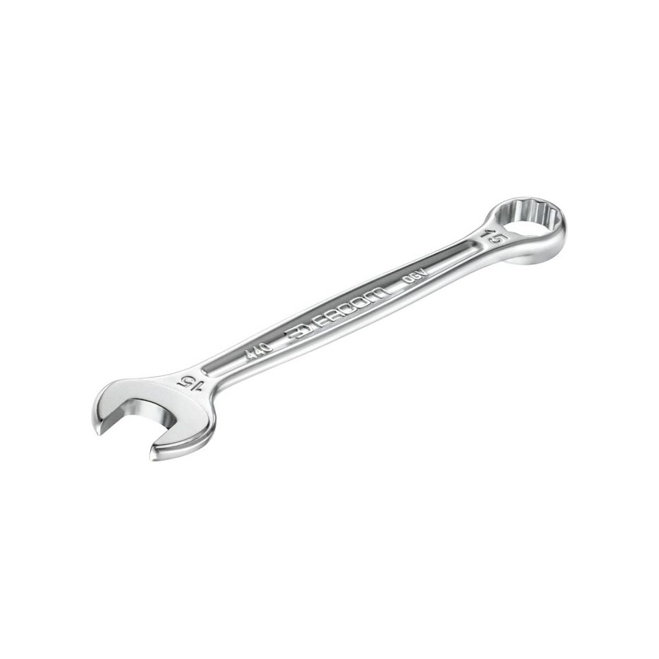 • Ontwerp: Gesmede stalen combinatiesleutel met open mond aan één zijde en ringkop aan de andere zijde, beide onder een hoek van 15° geplaatst.
