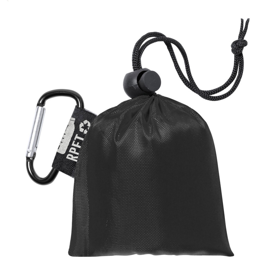 Hoe compact is de poncho wanneer opgevouwen? De poncho is zeer compact op te vouwen en past gemakkelijk in de bijgeleverde RPET draagtas met karabijnhaak.