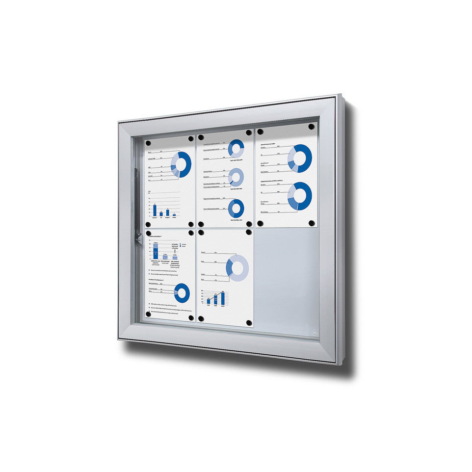Plaats eenvoudig uw notities of andere visuele elementen op de magnetische achterwand. Sluit daarna af met de sleutel om inhoud veilig te bewaren. Geschikt voor elk weertype door zijn robuuste IP56-certificering en duurzame materialen. Perfect toegankelijk zowel magnetisch als schrijfbaar!