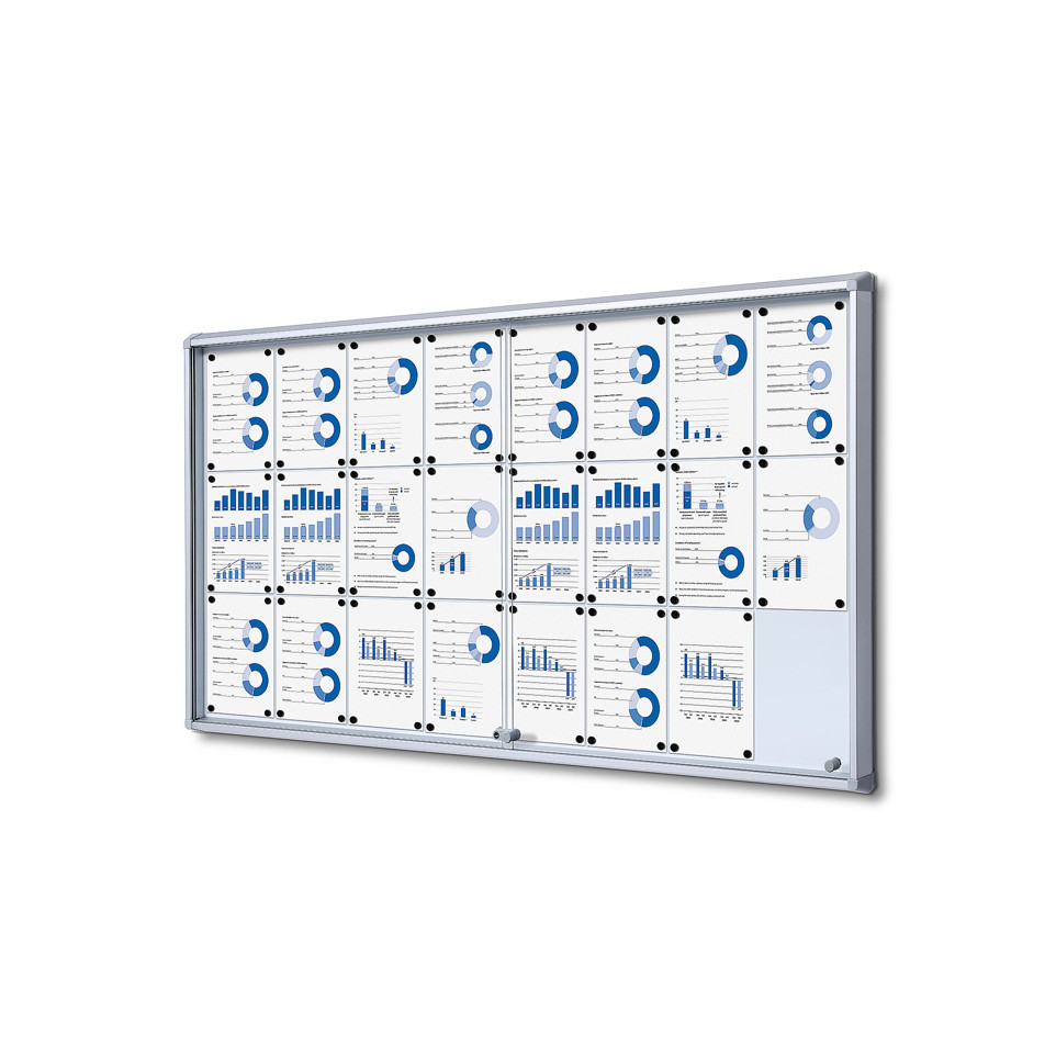 Dit vergrendelbare notitiebord met schuifdeuren is ideaal voor het tonen van documenten of informatie in openbare ruimtes, scholen en kantoren. Perfect voor binnengebruik dankzij een slank ontwerp en een magnetische achterwand.