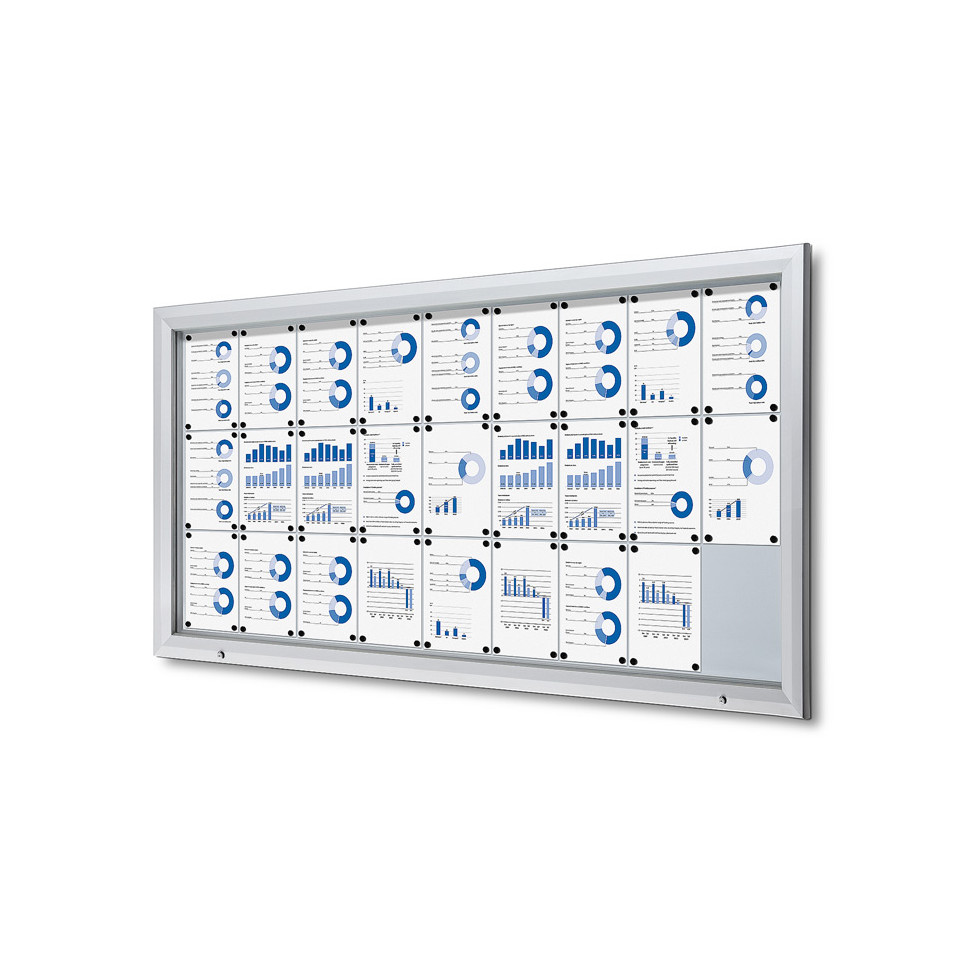 Plaats uw inhoud eenvoudig op de beschrijfbare of magnetische achterwand. Vergrendel de vitrine om deze veilig af te sluiten. Gasveren zorgen ervoor dat het openen soepel verloopt bij grotere formaten!