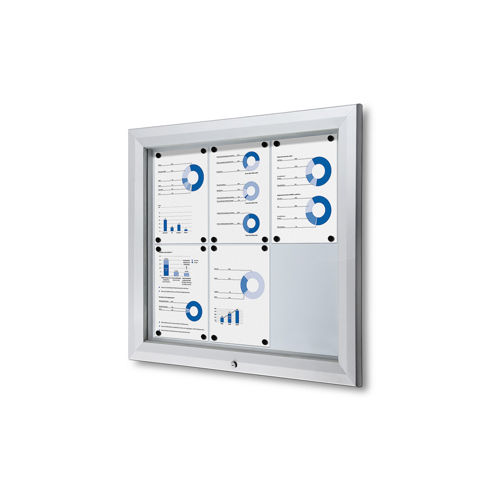 Vergrendelbaar notitiebord voor buitengebruik, geschikt voor 6x A4-formaat. Ideaal voor het veilig tonen van belangrijke berichten, posters of menu’s op openbare plekken zoals horeca, scholen of bedrijfsgebouwen.