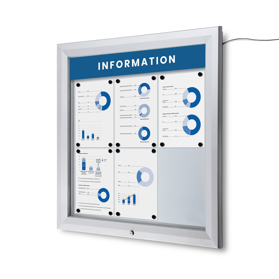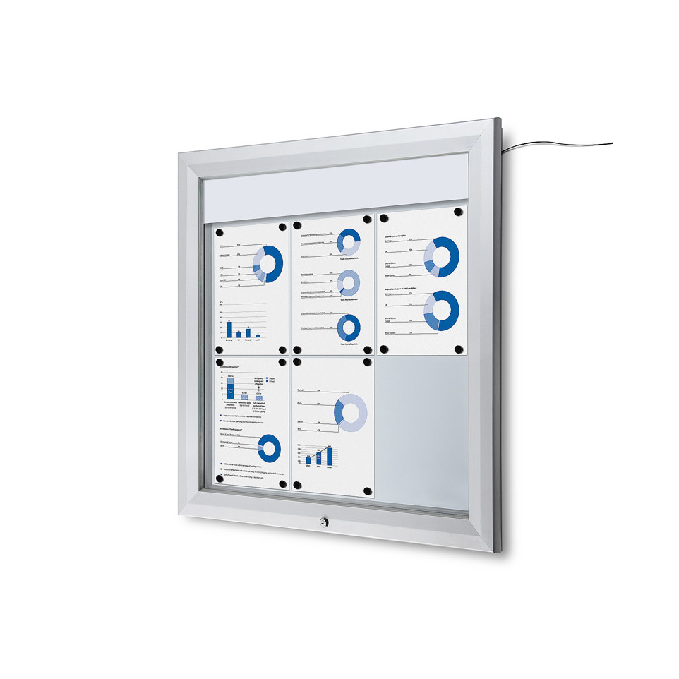Het Vergrendelbaar Notitiebord Outdoor Verlicht Logo 6x A4 is ontworpen voor professioneel gebruik buiten. Perfect om belangrijke informatie, menukaarten of openingstijden te presenteren op een stijlvolle en weerbestendige manier.