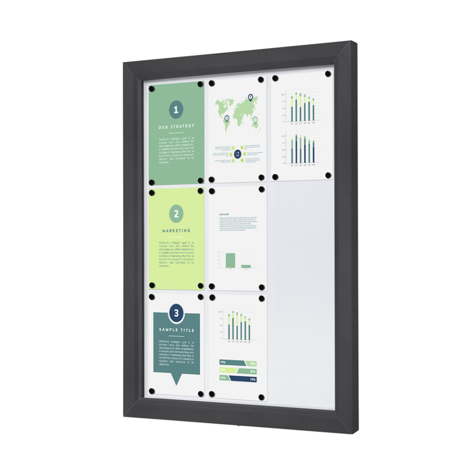 Ideaal voor het weergeven van mededelingen, flyers en posters in buitenomgevingen zoals schoolterreinen, parkeerplaatsen of winkelingangen. Het elegante design past perfect bij verschillende professionele settings.