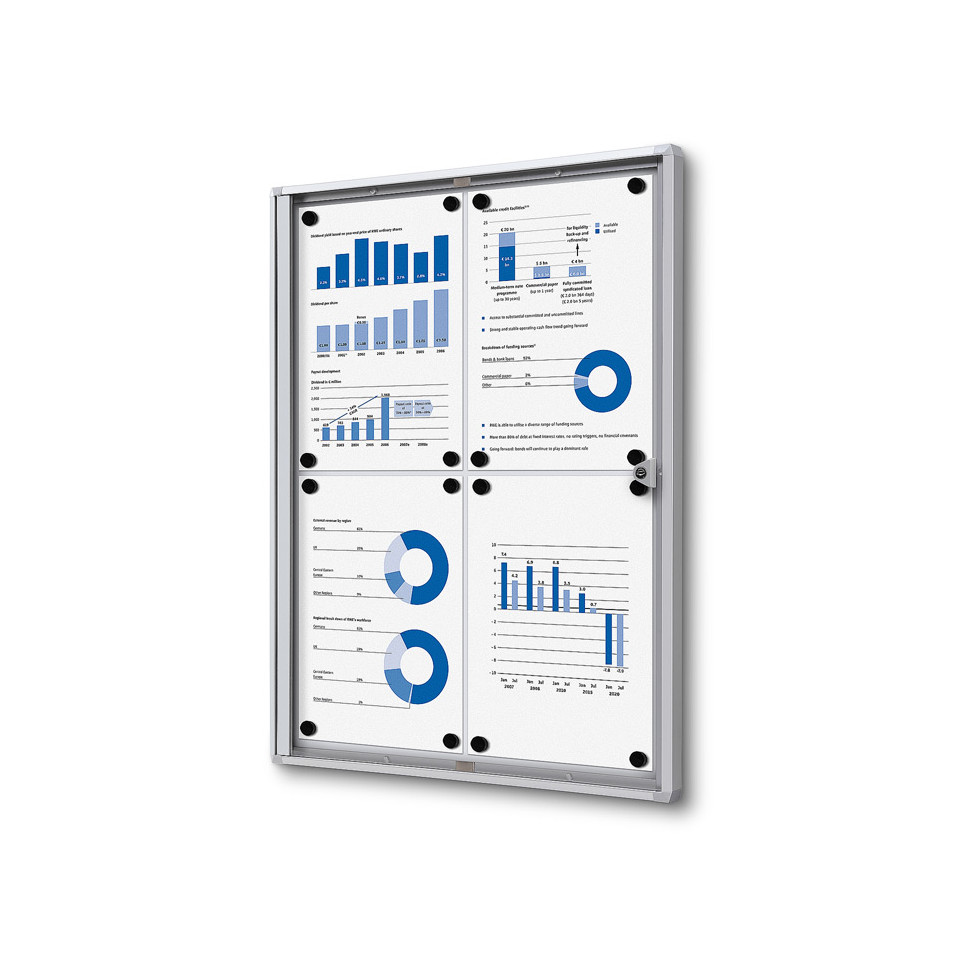 Ideaal voor het tonen van menu's, mededelingen en informatie op scholen, kantoren, restaurants en openbare ruimtes. Dit vergrendelbare notitiebord is geschikt voor binnengebruik en biedt ruimte voor 4 A4-documenten.