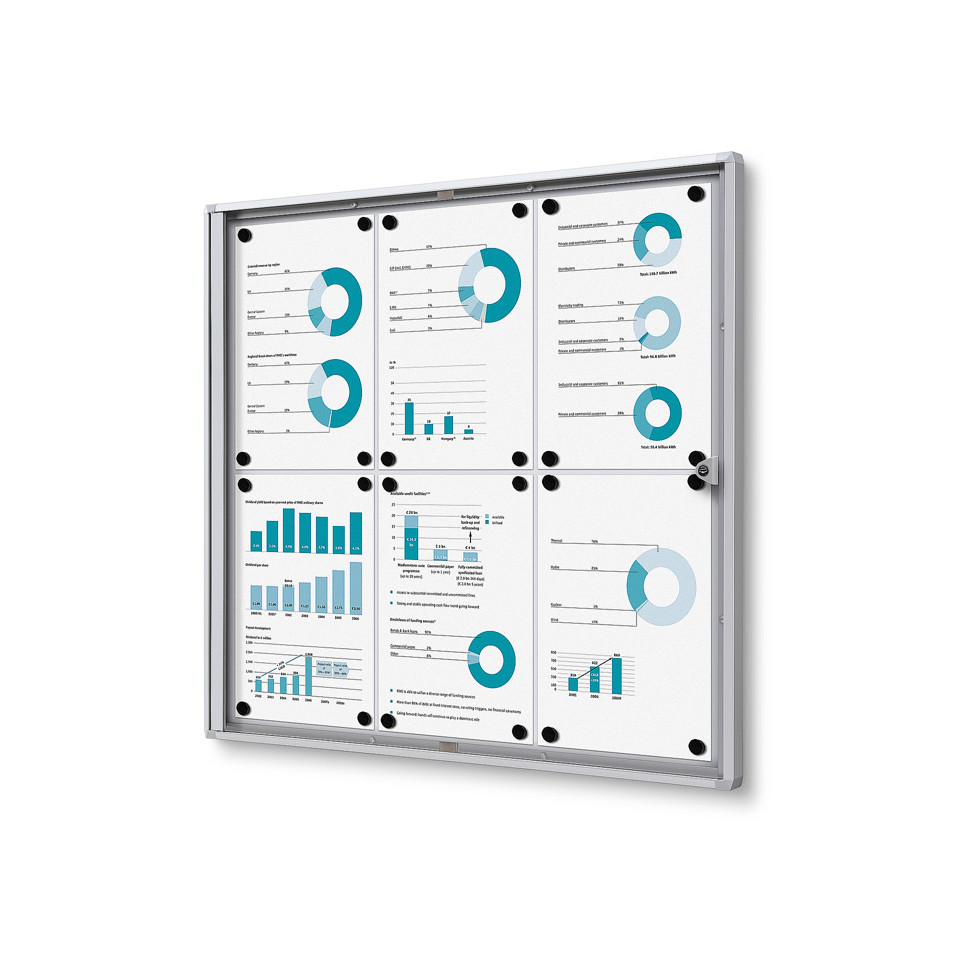 Plaats eenvoudig uw documenten binnenin met magneten of schrijf direct op de metalen achterwand. Sluit de deur af met de sleutel om informatie veilig te bewaren.