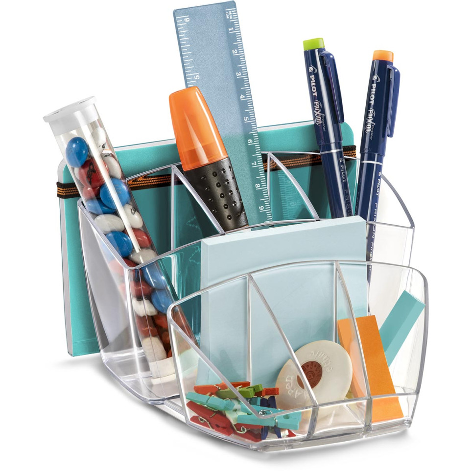 Plaats eenvoudig uw pennen, potloden en andere bureelbenodigdheden gescheiden in de acht vakjes. Door het transparante materiaal ziet u direct wat waar ligt en blijft uw werkplek netjes georganiseerd.