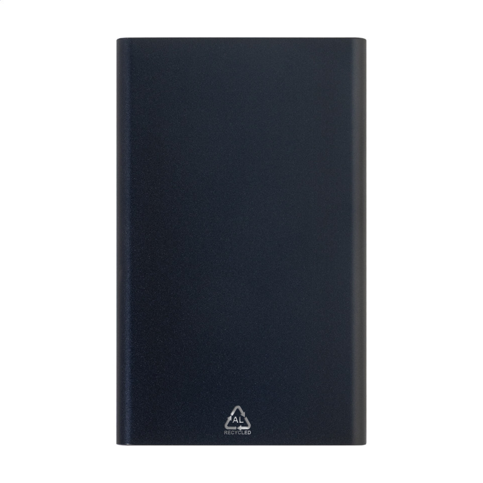De RaluFour powerbank in donker blauw is een compacte USB-oplader met 4000 mAh batterij in gerecycled aluminium behuizing. Laad smartphones en tablets onderweg op via USB- of USB-C-poorten. Inclusief USB-oplaadkabel. Afmetingen: 110 x 68 x 10 mm. Gewicht: 132 g.