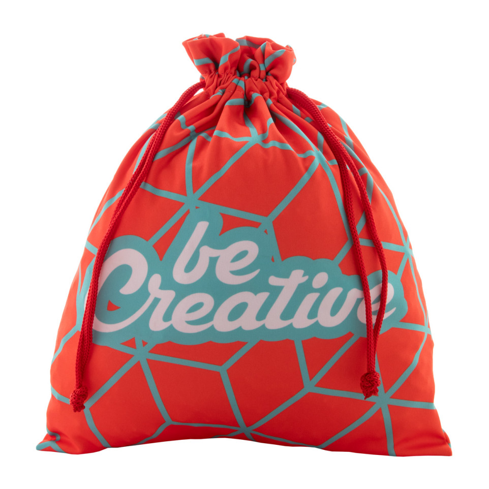 De SuboGift L is een op maat gemaakte polyester geschenkzak met rode trekkoordsluiting, perfect voor het stijlvol presenteren van geschenken bij zakelijke evenementen of promotionele gelegenheden.