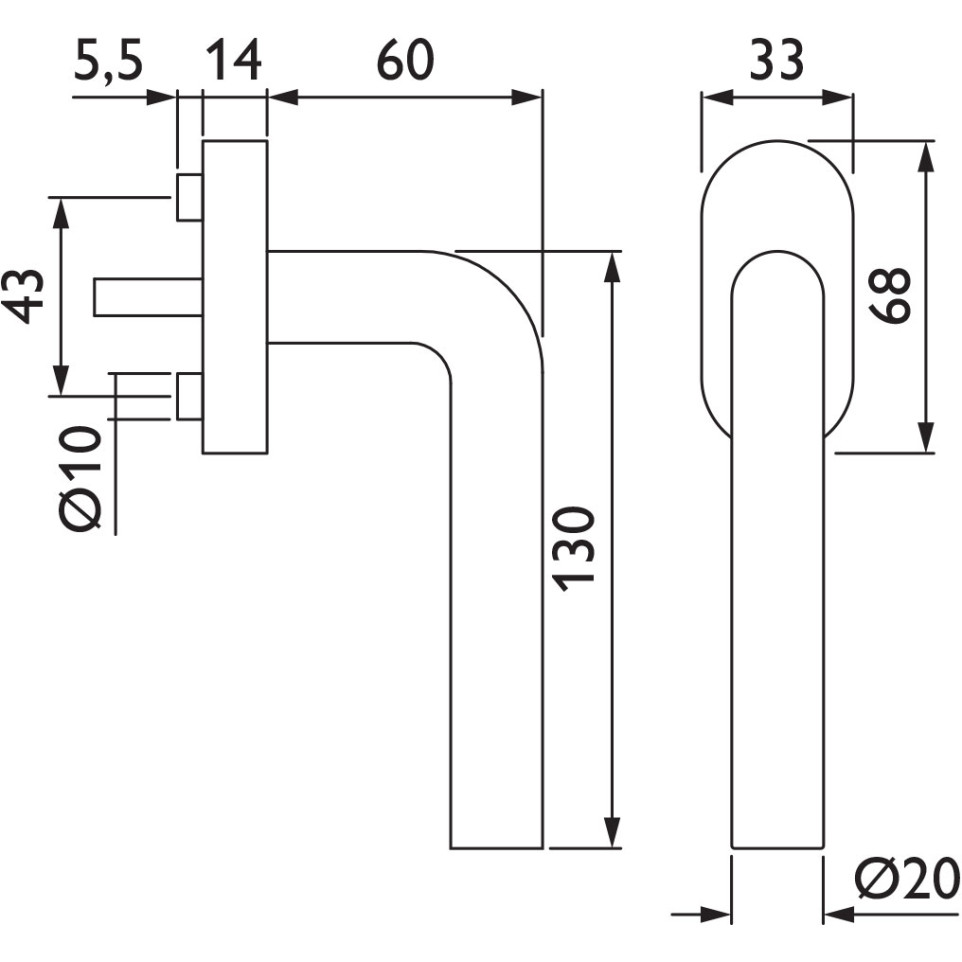 De Hermat raamgreep 'L' Ø 20mm Basic 03 Inox is een functioneel en strak ontworpen handgreep, geschikt voor diverse raamtypes in zowel woon- als werkomgevingen.