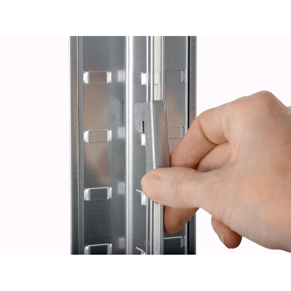 Monteer de verbindstukken eenvoudig aan beide rekken om ze veilig aan elkaar te koppelen. Hierdoor ontstaat een stabiel geheel, ideaal voor bijvoorbeeld magazijn- of archiefinrichting waar meerdere reken naast elkaar staan en extra stevigheid gewenst is. Een eenvoudige installatie met standaard gereedschap is voldoende.