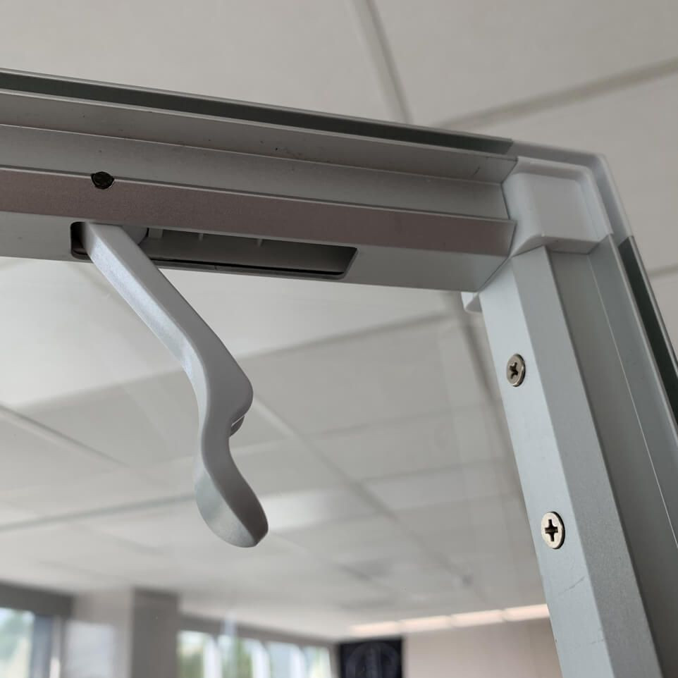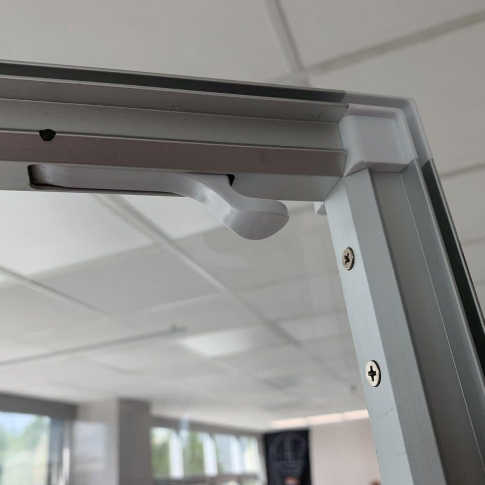Vrijstaand apparaat, gemakkelijk te verplaatsen en te monteren. U kunt de transparante film later vervangen door een afgedrukte afbeelding.
