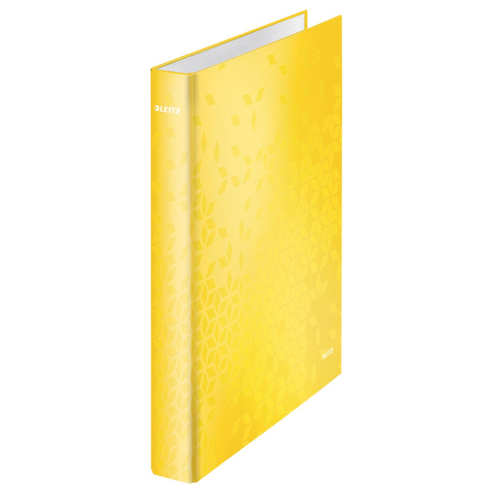 De Leitz WOW ringmap met 2 ringen in geel is een stevige en praktische ordner, ontworpen voor A4-documenten (27,5 x 31,8 cm). Ideaal voor school, kantoor of thuisgebruik waar overzicht en organisatie belangrijk zijn.