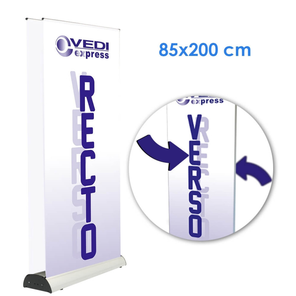 Rollup DeLuxe 85x200 voor tweezijdig gebruik - zonder bedrukking, zonder beelden.